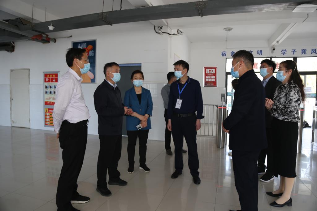 4月9日上午,省教育厅副厅长张庚家在市委教体工委书记、市教体局局长王玉和,市委教体工委委员、市教体局副局长袁天峰的陪同下,来校督导检查学校疫情防控工作。学校党委书记张志华,党委副书记、校长汪上,党委委员、副校长吴惠珍等陪同检查。