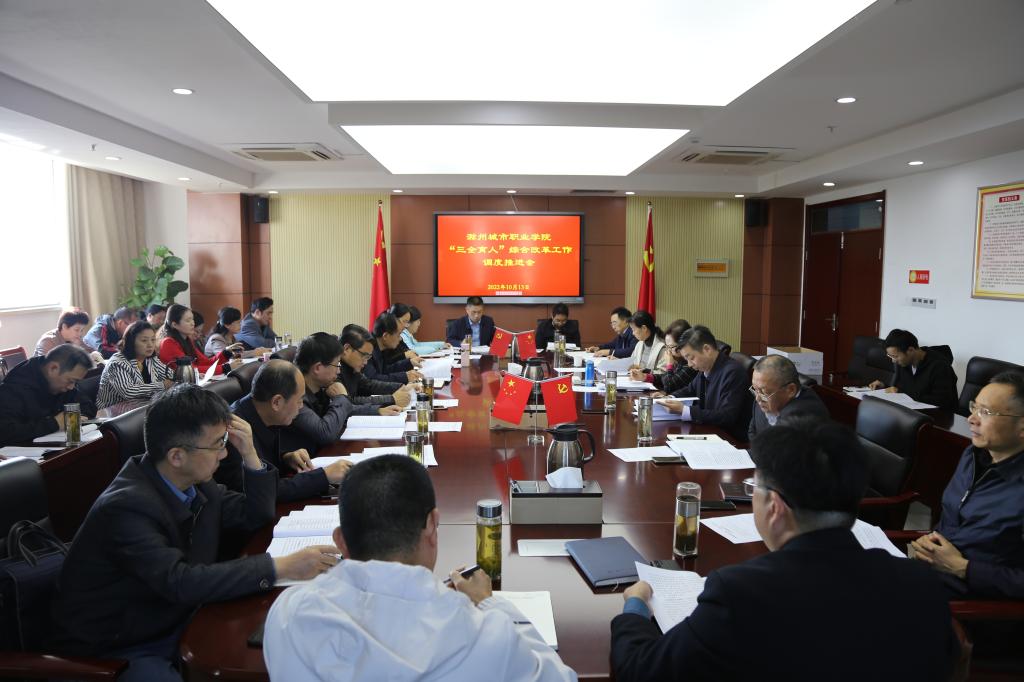 10月13日上午,学校“三全育人”综合改革工作调度推进会在图文中心六楼第四会议室召开,党委书记张志华出席会议并讲话,党委副书记、校长汪上主持会议,校领导班子成员、各部门负责人、各教学院(部)主要负责人参加会议。