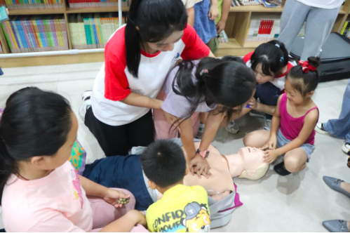 张志华一行在梅铺社区季凤的引导下参观了梅铺社区科普馆、文化室、党群活动中心等,现场观看了防溺水和溺水后急救的主题讲座、防溺水宣传的手势舞;在社区广场慰问了健康义诊的志愿者师生。