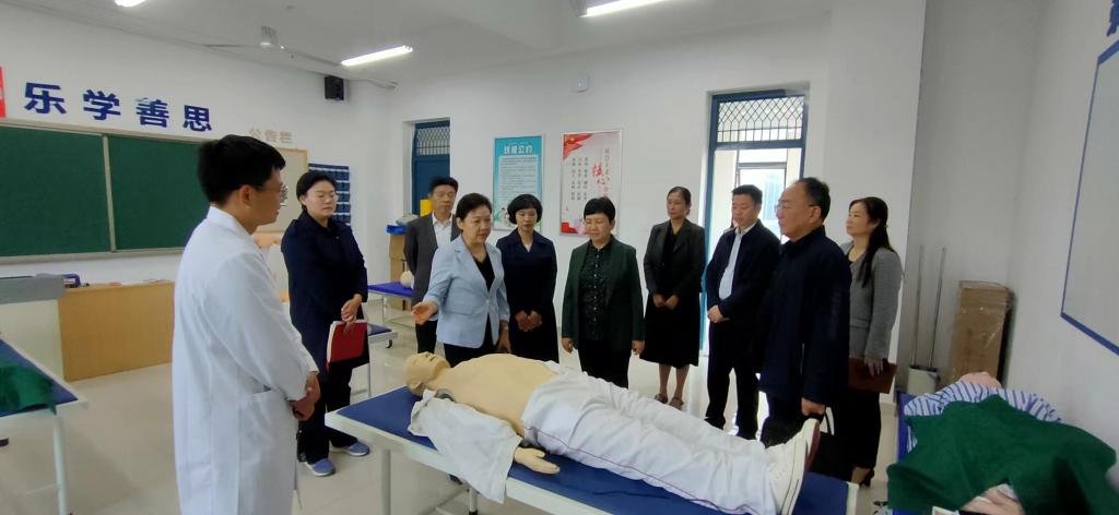 查镜波一行实地考察了医学院临床医学、中医技术、中医按摩等实训场所,与实训教师亲切交谈,了解临床医学专业人才培养、专业建设、实训室建设等情况。随后,在图文中心第四会议室召开座谈会。