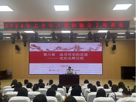 为提升入党积极分子的政治觉悟,加强对党的认识,深刻理解党的历史使命,加强党员教师的党性修养,4月10日,校党委副书记、校长汪上在教育学院报告厅为入党积极分子和学生党支部党员教师作题为《追寻历史的足迹——党的光辉历程》的专题党课,教育学院入党积极分子及学生党支部党员教师参加。