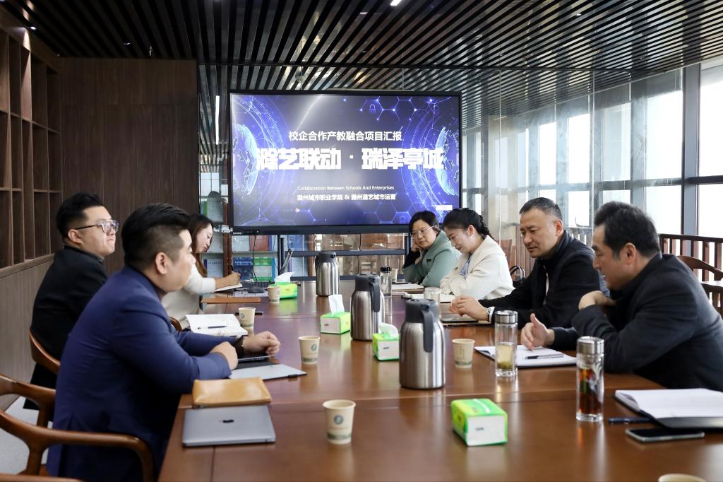 会上,王燕永详细介绍了艺术与传媒学院、教育学院的学科与专业建设、教育教学等基本情况。周峰介绍了公司发展历程、业务情况,叶扬重点介绍“滁艺联动・瑞泽亭城”项目规划,阐述了以“艺术+教育+文旅+科技”为方向,实现校企资源共享,打造特色合作项目的构想。道艺(浙江)商业管理有限公司 CEO 史涛进一步介绍了科技在文旅教育产业中的创新驱动作用以及未来发展前景。