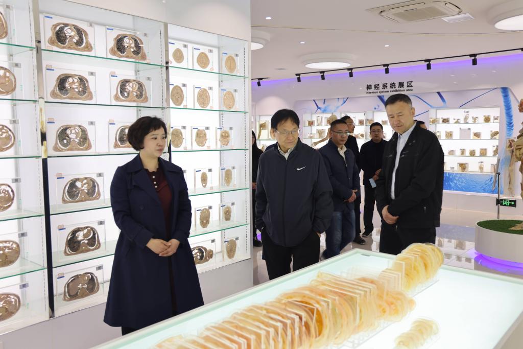 张学记一行首先来到医学院,先后参观生命科学馆和实验实训室,认真听取生命科学馆建馆理念、功能定位及科普教育等方面的情况介绍,与现场人员认真交流。张学记指出,生命科学馆作为一个普及生命科学知识的重要平台,在医学教学、专业建设、学术交流等方面意义重大,要通过互动性强、生动有趣的内容展示和教育方式,拉近与大众尤其是青年学生的距离,有力提高人们的科学素养和生命健康意识。