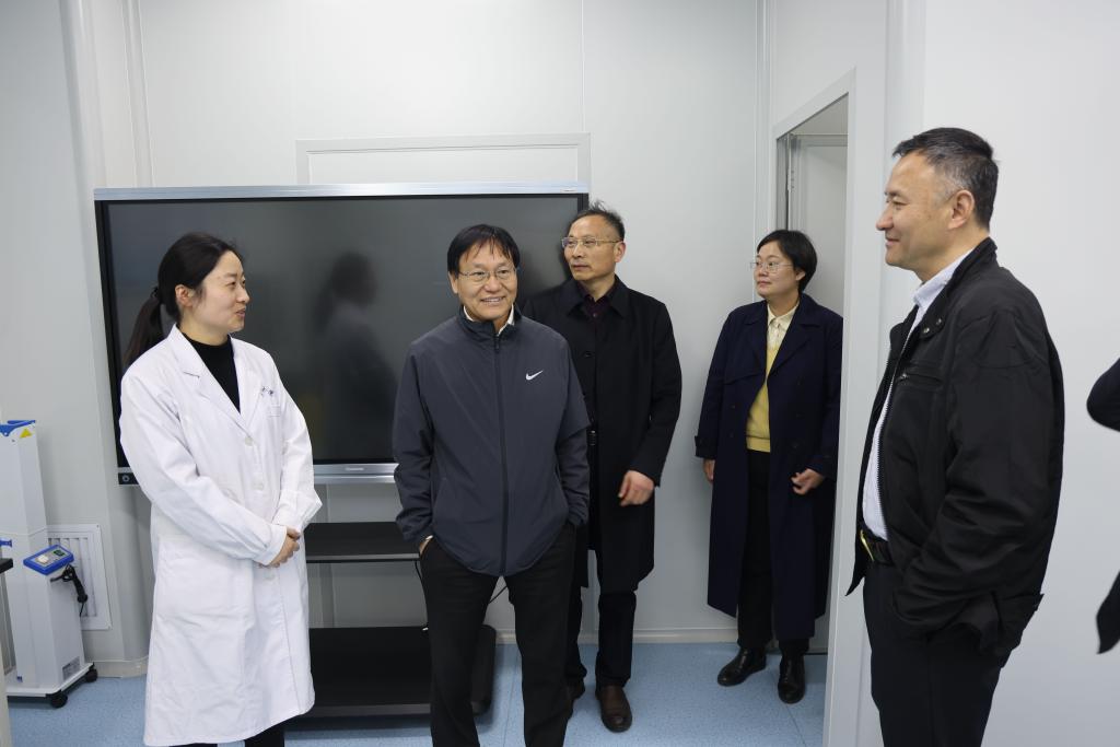 在生物实验室和药学实验室,张学记认真听取实验室建设运行及科研进展的情况介绍,察看成果转化应用展示,并与师生代表进行了亲切交流。