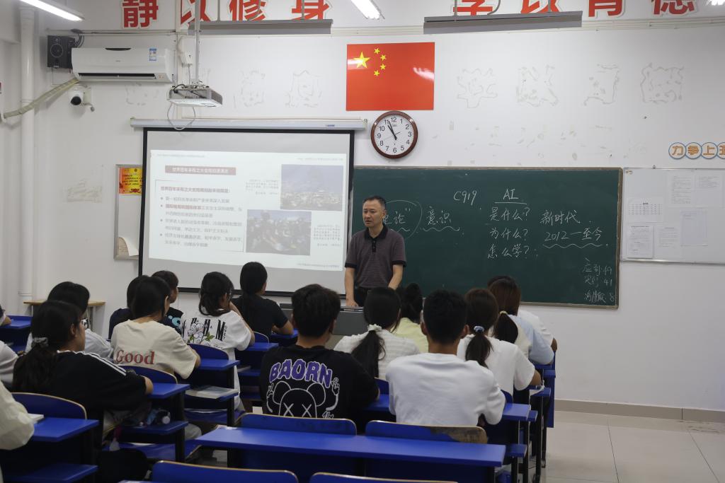 校党委书记王燕永走进仁爱楼,听取了杨建勋老师讲授的《习近平新时代中国特色社会主义思想概论》课程。杨建勋老师以抗日战争历史为切入点,引导学生深刻感悟新时代青年的使命担当。课后,王燕永与同学们面对面交流,勉励大家尽快实现从“被动学习”向“主动探究”转变,将对先烈的缅怀敬仰转化为珍惜当下、奋发学习的动力,将专业学习与国家发展需求紧密结合,在滁城院这片沃土上开阔视野,提升格局,努力成长为堪当民族复兴大任的时代新人。