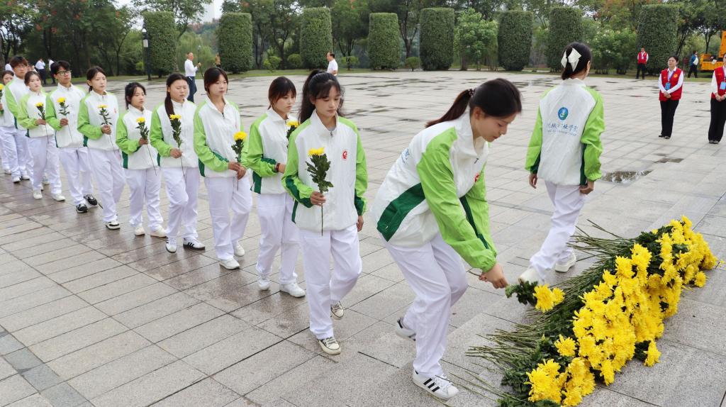 在第12个烈士纪念日来临之际,为缅怀革命先烈,传承红色基因,弘扬爱国主义精神,9月30日上午,我校组织马克思主义学院教师、学生代表共45人,赴镜园参加滁州市烈士纪念日向烈士敬献花篮仪式,以庄严的仪式表达对先烈的深切缅怀与崇高敬意。