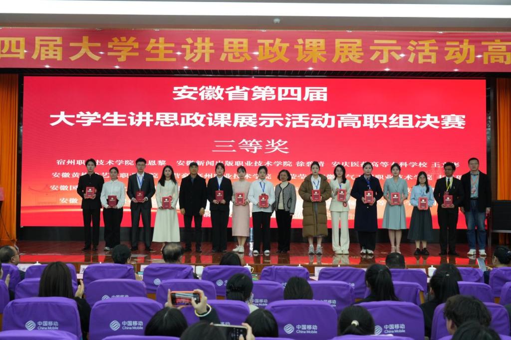 为深入学习贯彻全国、全省教育大会精神,坚持不懈用习近平新时代中国特色社会主义思想铸魂育人,持续推进“大思政课”建设走深走实,12月19日,由中共安徽省委教育工委主办、安徽职业技术大学承办的安徽省第四届大学生讲思政课高职组决赛圆满落下帷幕。在本次赛事中,我校3支参赛团队在赛事中表现优异,一举斩获一等奖1项、二等奖1项、三等奖1项的佳绩,充分彰显了我校思政课教学改革的显著成效与青年学子的深厚理论素养。