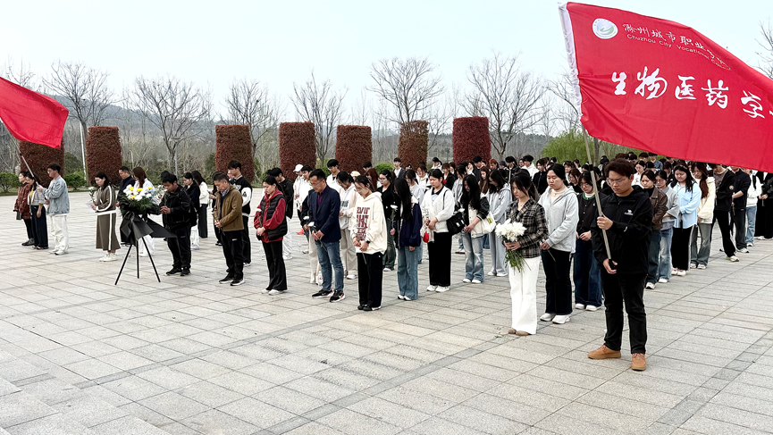 在镜园革命烈士纪念碑前,师生整齐列队齐唱国歌,向革命先烈敬献鲜花、鞠躬默哀,并绕行瞻仰纪念碑。镌刻在石碑上的历史与故事,让青年学子深切感受到革命先烈的奋斗精神。