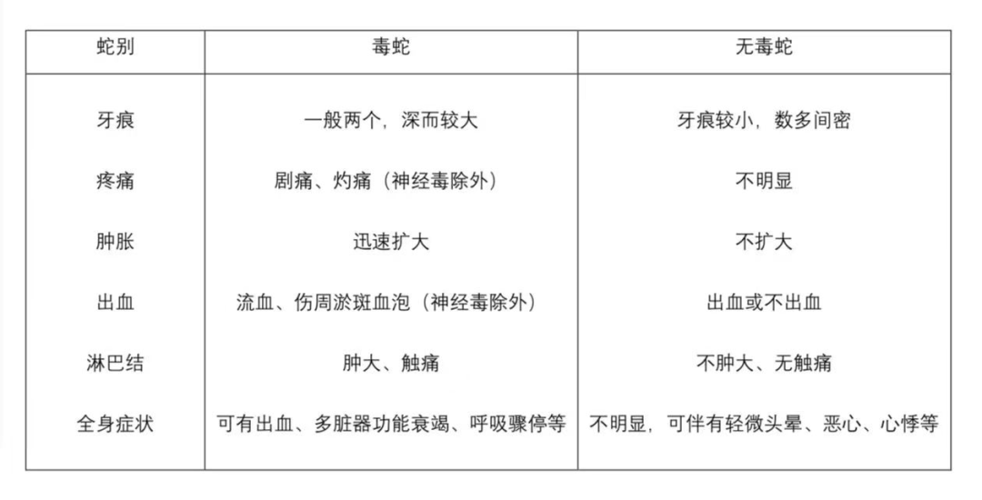 在保证安全的情况下,尽量记住蛇的形状、花纹等外形特征,如果可以尽量拍下蛇的照片,方便医生对症下药。如能在3小时内及时使用相应的抗蛇毒血清效果最好;切勿轻信民间偏方,嘴吸毒液、刀切伤口等都可能导致蛇伤伤情加重,影响施救。