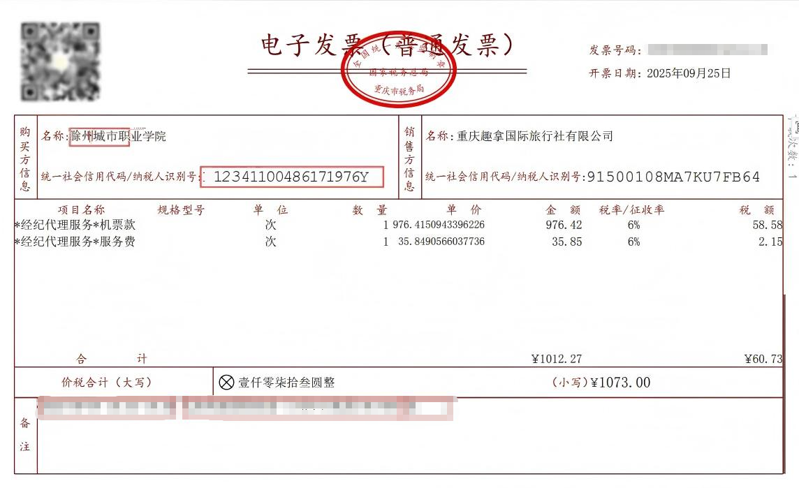 若开具数电发票,须在备注栏填写以下信息:乘机人、航班号、行程信息、舱位及登机时间。