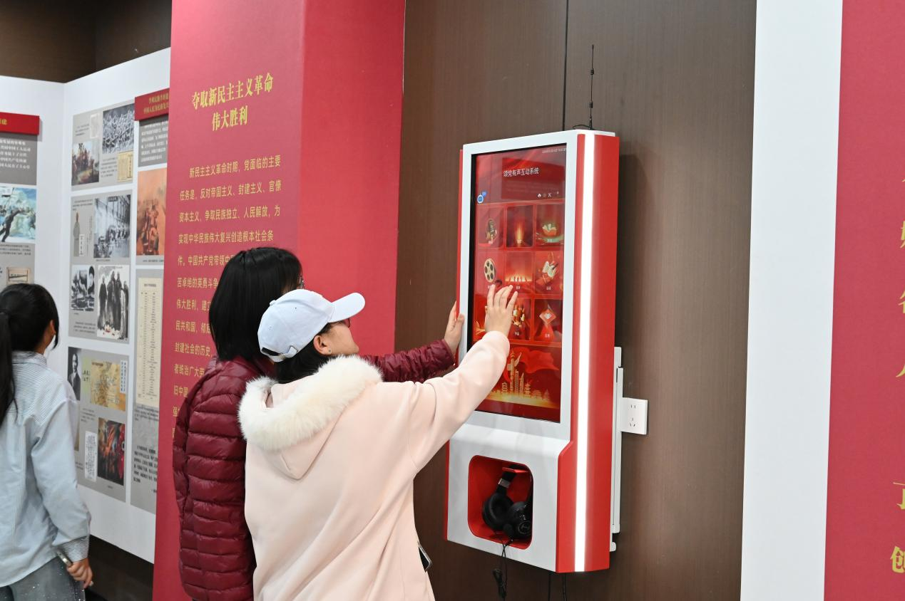 随后,同学们走进马克思主义学院智慧思政研修基地,参观中国共产党历史展厅,重温抗战岁月里巾帼英雄不畏艰险、勇毅投身革命的英勇事迹。现场还共同观看《在“她”乡》纪录片,聚焦新时代各领域杰出女性的奋斗故事,感受她们立足岗位、砥砺前行的巾帼担当,让大家对新时代女性的责任与使命有了更深刻的理解。活动最后,师生们沉浸式体验互动沙盘、VR思政观景台等现代化思政教育设备,让红色精神在“可触摸的历史”中入脑入心。