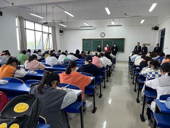 竞赛期间,汪上校长、曹士东副校长、学生处杨如江处长、公共教学部何大海主任、吴国庆副主任亲临考场巡考。