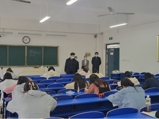 竞赛期间,教务处处长戴锦明、公共教学部主持工作副主任张晓杰到现场巡考。考场秩序井然,参赛选手们沉着、冷静、积极思考,以严谨的态度、扎实的基础,发挥了良好水平。
