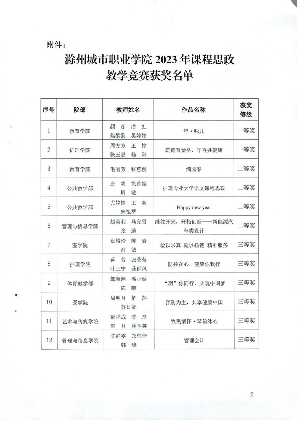 日前,教务处公布了2023年课程思政教学竞赛校赛结果,公共教学部大学语文教研室唐隽、徐善娥、周敏团队,大学英语教研室尤婷婷、王奕、宋祖翠团队分获二等奖。