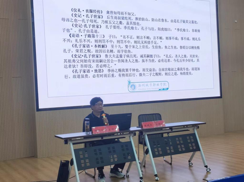 在讲座中,田教授首先引经据典、旁征博引,详细为大家介绍了孔子的成长经历,鼓励大家向孔子学习,“只要心中有梦想,脚下不停步,小草也能开出梦想的花来!”接着又深入探讨了孔子的治学理念和家国理想。田教授指出,孔子治学行道并非一蹴而就,而是道阻且长。整场讲座贯穿古今,引人深思。