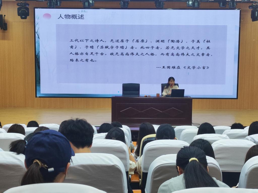 6月19日下午,公共教学部“阳明讲堂”系列讲座第七期在教育学院报告厅开讲。此次讲座由公共教学部副教授、宣传统战部副部长张少敏主讲。张少敏以“千年回望苏东坡, 也无风雨也无晴”为主题,和来自各个专业的师生分享了苏轼坎坷起伏的一生,以及他的道家思想。