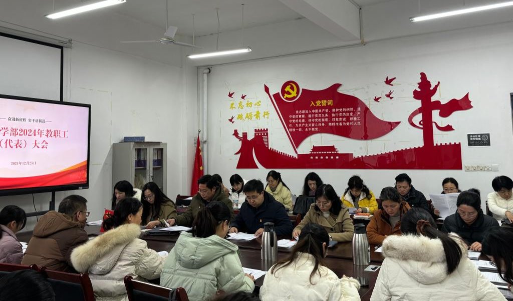 12月25日,公共教学部2024年教职工(代表)大会在静思楼一楼党员活动室顺利召开,会议由党总支副书记、分工会主席张晓慧主持,教学部31名教职工代表出席了会议。