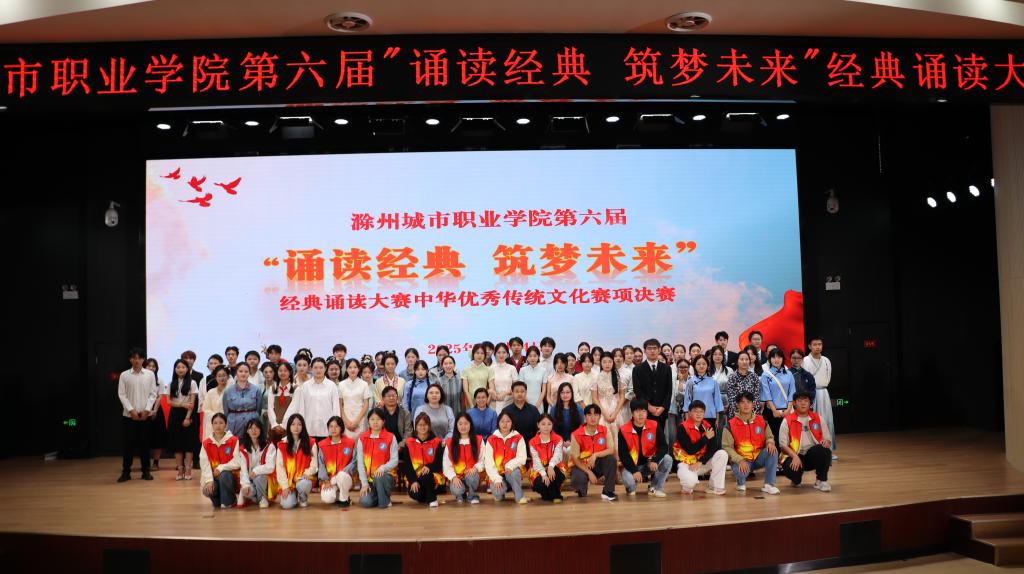 为弘扬中华优秀传统文化,传承红色革命精神,营造书香校园浓厚氛围,滁州城市职业学院第六届“诵读经典 筑梦未来”经典诵读大赛暨第十九届全省大学生诗文朗诵比赛校级选拔赛,于10月13日至14日下午成功举办。校党委副书记牛春雨,校团委、科技处、公共教学部、马克思主义学院等部门、院部相关同志到现场观赛并担任大赛评委,来自全校各学院30组优秀作品齐聚一堂,竞展风采。
