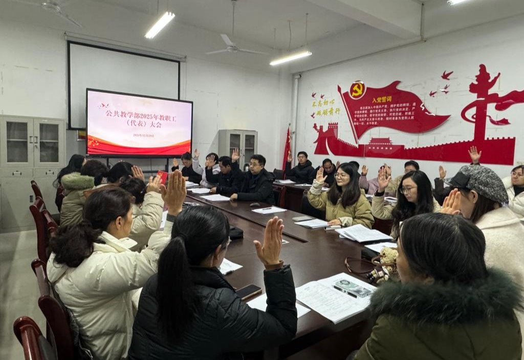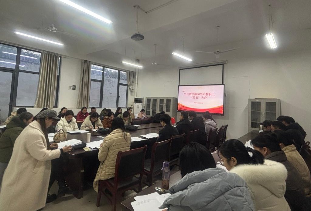 12月29日,公共教学部2025年教职工(代表)大会在静思楼108室顺利召开。会议由公共教学部党总支书记、副主任(主持工作)张晓杰主持,教学部35名教职工代表出席会议。