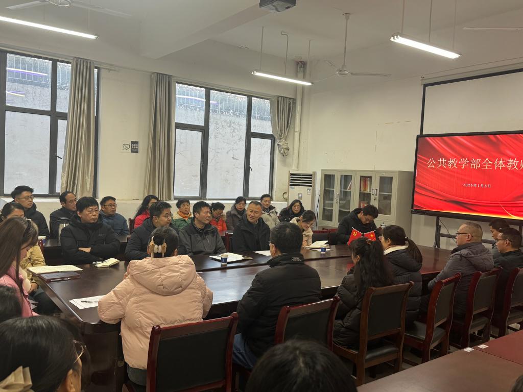 1月6日下午,公共教学部召开干部送任大会。校党委书记王燕永,党委委员、组织人事处处长杨莹,党委委员、办公室主任、宣传统战部部长陈华兵出席会议,学部党政管理人员、各教研室主任及全体专职教师参加会议。会议由陈华兵主持。