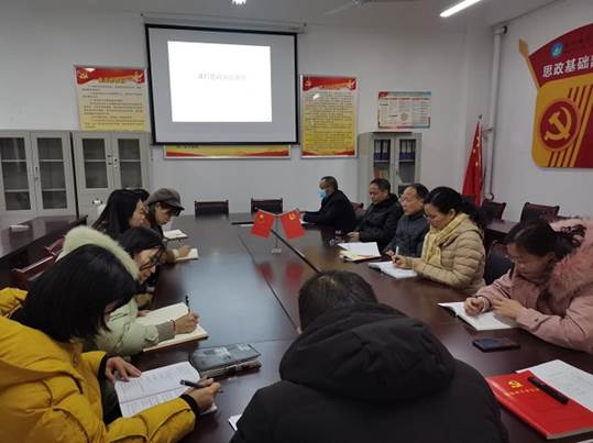 大会有两项议程,第一项议程是由党支部书记吴国庆给全体党员上了一堂题为《课程思政知识简介》的党课。吴书记讲了课程思政的内涵和外延,讲述了我国课程思政的三个发展阶段和成果;从课程思政的形式、本质、理念、结构、方法、思维等多角度,对课程思政进行了全面的概述;以本部门大学语文和大学英语课程为例,介绍了目前我部门教师开展课程思政建设的情况,肯定了成绩也指出了不足。吴书记精心准备,给党员们上了一堂精彩的“课程思政”党课,在座的党员们都深受启发。