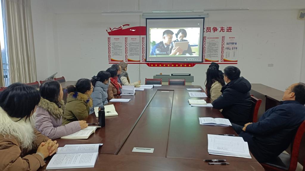 会上,公共教师部党支部周敏同志带领大家集体学习了吴秋瑾同志的先进事迹报道,一同回顾了她扎根基层一线、立足平凡岗位、砥砺敬业奉献的奋斗历程。之后与会党员又集体观看了安徽先锋网关于吴秋瑾同志先进事迹的专题片《一路芳华映初心——安徽省女子监狱三级高级警长吴秋瑾》。