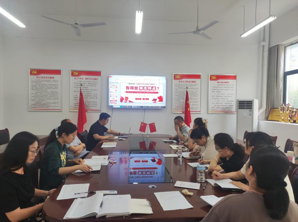 会上开展了集体学习。随后,教学部党总支书记、主持工作副主任张晓杰围绕新修订的《中国共产党纪律处分条例》有哪些突出特点,为全体党员结合实际讲授了一堂专题党课。