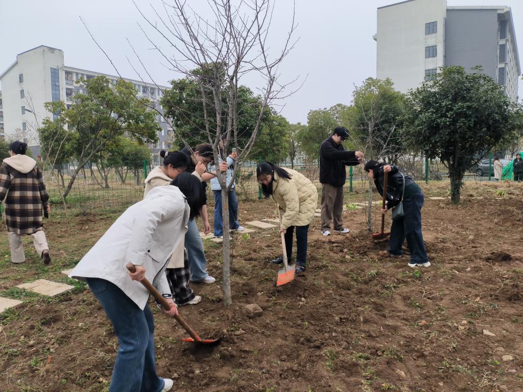 春风拂绿,万物勃发。为弘扬新时代雷锋精神,践行“以美育人、以文化人”教育理念,3月12日下午,公共教学部党总支组织分工会教师志愿者走进校心理健康园艺疗法实践基地“心灵驿站”,与学生代表共同开展“种一树繁花,育满园芬芳”义务植树活动,以实际行动响应校教代会“优化育人环境,打造花样校园”提案,为校园增添盎然生机。
