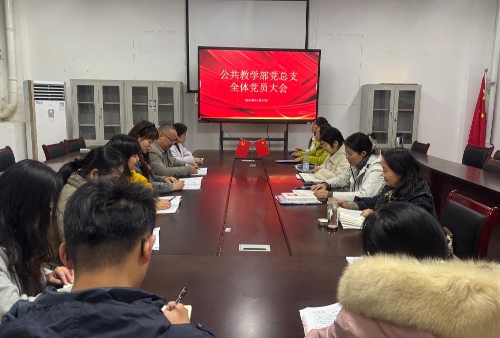 为学习贯彻党的二十届四中全会精神,强化责任担当,凝聚思想共识,11月17日下午,公共教学部党总支在静思楼党员活动室召开全体党员大会,会议由党总支书记张晓杰主持,党总支全体党员参加。