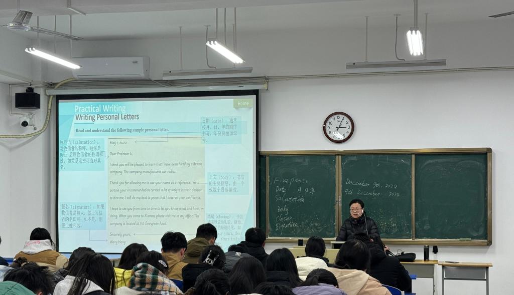 12月9日下午,大学英语教研室副教授程丽萍老师在仁心楼302教室讲授了一堂精彩的公开课,授课内容为《新视野英语教程》第五单元Practical Writing:Writing Personal Letters部分,大学英语教研室全体无课老师到场观摩学习。