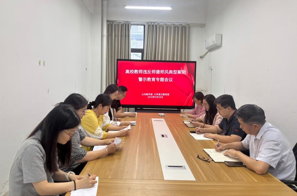 为加强师德师风建设,进一步提升教师职业道德素养,5月28日,大学语文教研室在公共教学部研讨室开展了师德师风警示教育专题活动。教研室全体教师参加了此次活动。