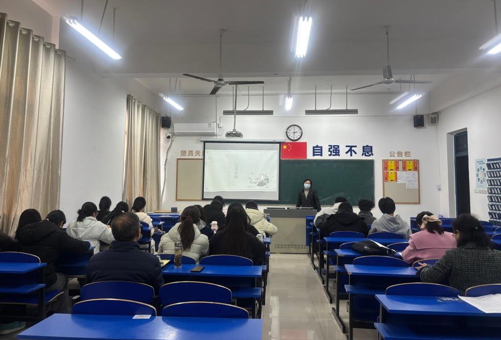 12月11日下午,大学语文教研室唐隽老师在仁心楼209教室开展公开课教学活动,主讲《孔子论孝》,教研室无课教师及校各级督导等前往观摩。