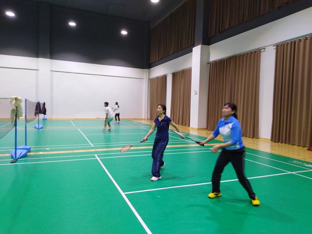 2021年11月28日下午3:50,滁州城市职业学院工会与滁州职业技术学院工会联办的教职工羽毛球友谊赛,在滁州职业技术学院体育馆举行。
