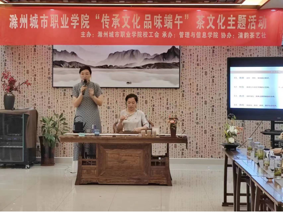 片片粽叶香,浓浓端午情。在端午佳节来临之际,为丰富教职工文化生活,让教职工体验中华民族优秀传统文化,由校工会主办、管理与信息学院承办、医学院协办的 “传承文化 品味端午”教职工茶文化活动于6月21日在校茶艺实训室隆重举行。校党委副书记牛春雨、校工会委员会全体委员、各分工会主席、分工会委员及教职工代表四十余人参加了活动。