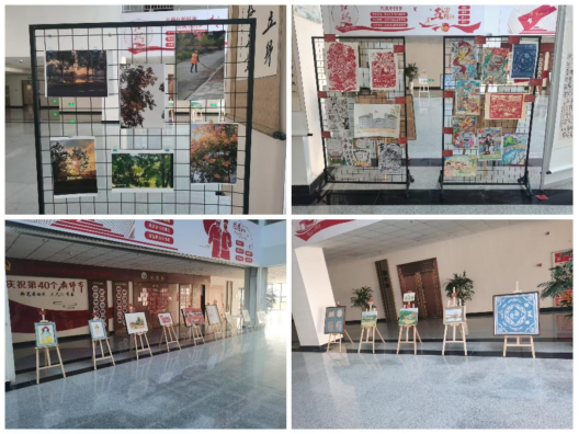 本次书画展得到了全校师生大力支持,教师、学生中广大书画爱好者挥毫泼墨,演绎丹青,从作品的质量上看,内容丰富,形式多样,风格相异,各有千秋,作品有绘画、书法、摄影、剪纸等。