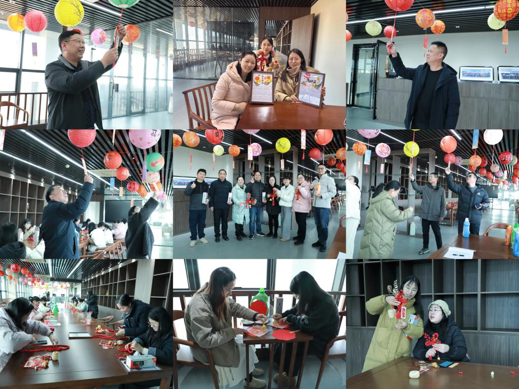 活动现场,一串串各色灯笼高高悬挂,与一幅幅书画相映成趣,缤纷的色彩烘托出浓郁的节日氛围,令人眼前一亮、心生暖意。猜灯谜区域气氛热烈,教职工们或驻足凝思,或交流探讨,猜中者笑逐颜开,在趣味互动中感受传统文化的智慧与乐趣。手工体验区同样人气高涨。教职工们亲手制作中国结、团扇拓印和压花年历等富有传统韵味的作品。大家巧手翻飞,专注创作,在编织、拓印、压花的过程中体验手作的温度与美感。现场笑语盈盈,情谊融融,教职工们在动手实践中不仅领略了传统工艺的魅力,也将对新年的美好期许融入一件件精巧的作品之中。