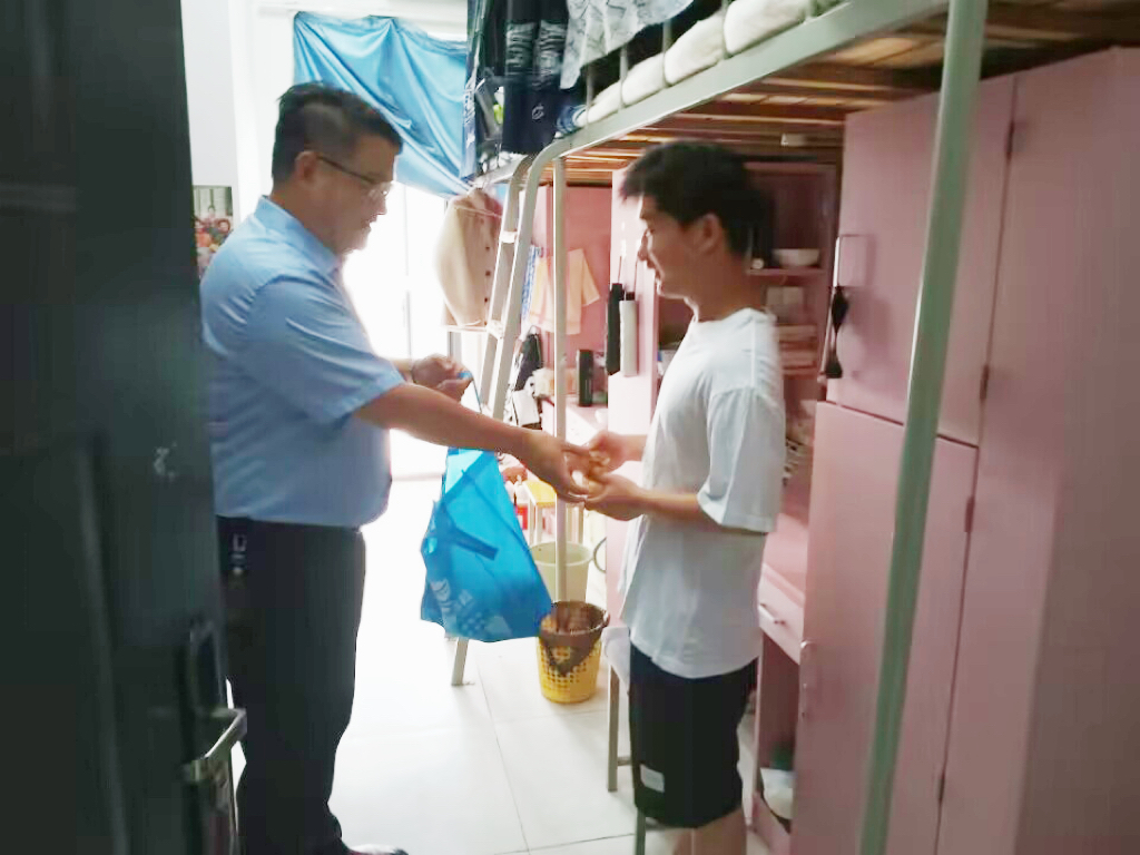 管理与信息学院党总支书记陈兴旺、副书记秦海娇与辅导员、班主任走进学生宿舍,开展宿舍卫生大检查。向学生强调少聚集、戴口罩、勤洗手、常通风等疫情防控手段,宣传、解读校园疫情防控政策。恰逢中秋佳节,老师们还为同学们带去了月饼、餐券,陪同学生共进午餐,与学生开展深入交流,了解并解决学生在学习和生活中遇到的问题。
