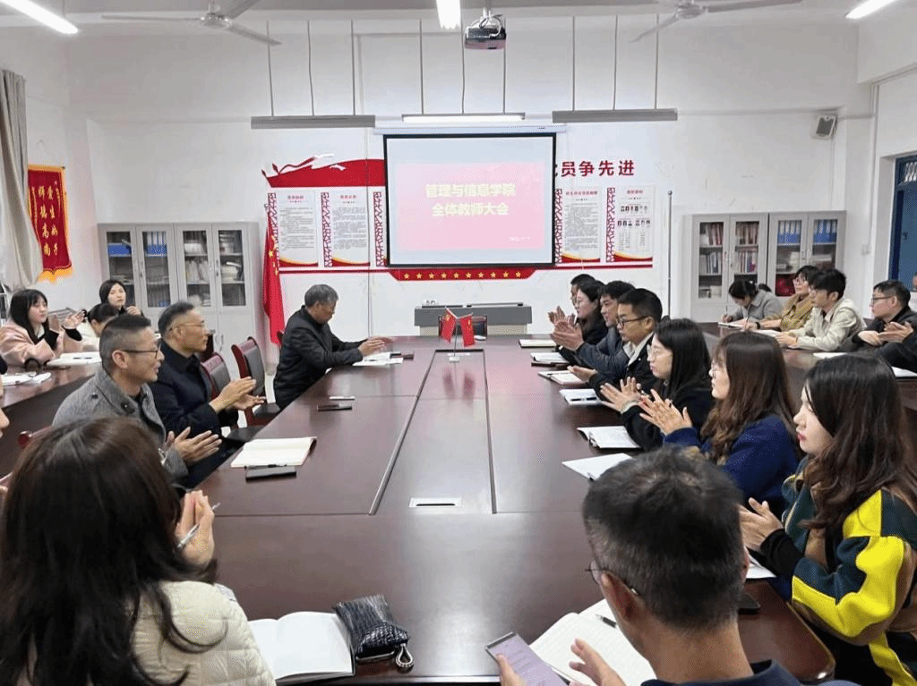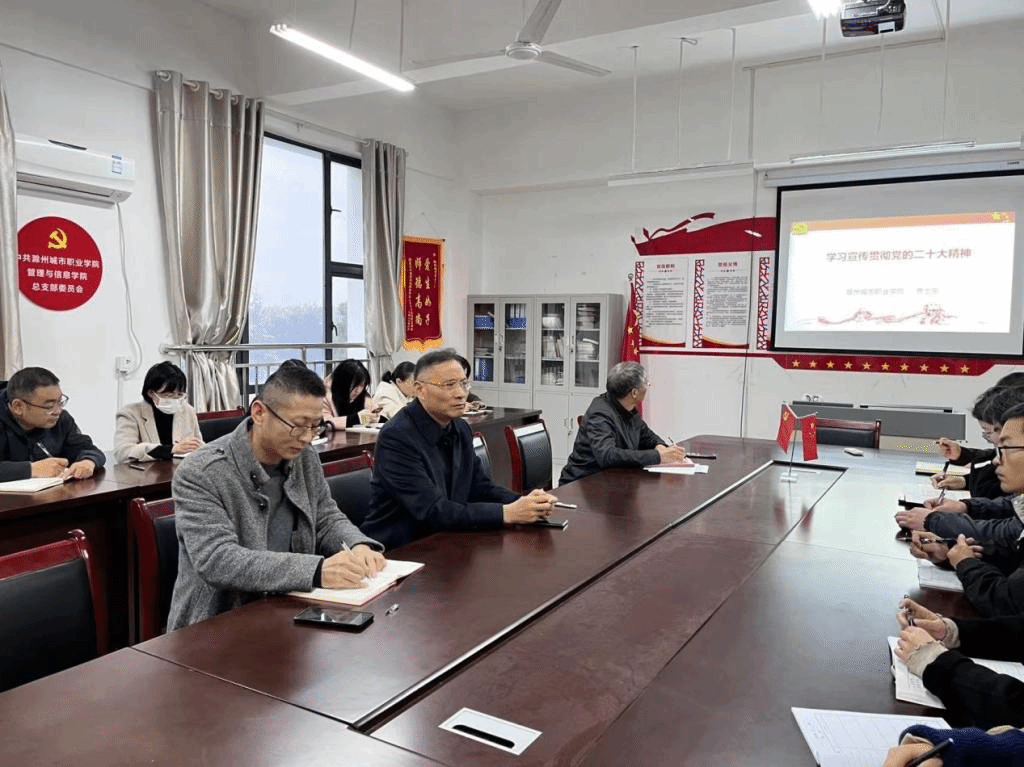为学习宣传贯彻党的二十大精神,推进党的二十大精神全面学习、全面把握、全面落实,11月17日下午,校党委委员、副校长曹士东深入管理与信息学院,开展了《学习贯彻党的二十大精神》的专题宣讲,学院无课教师参加学习。