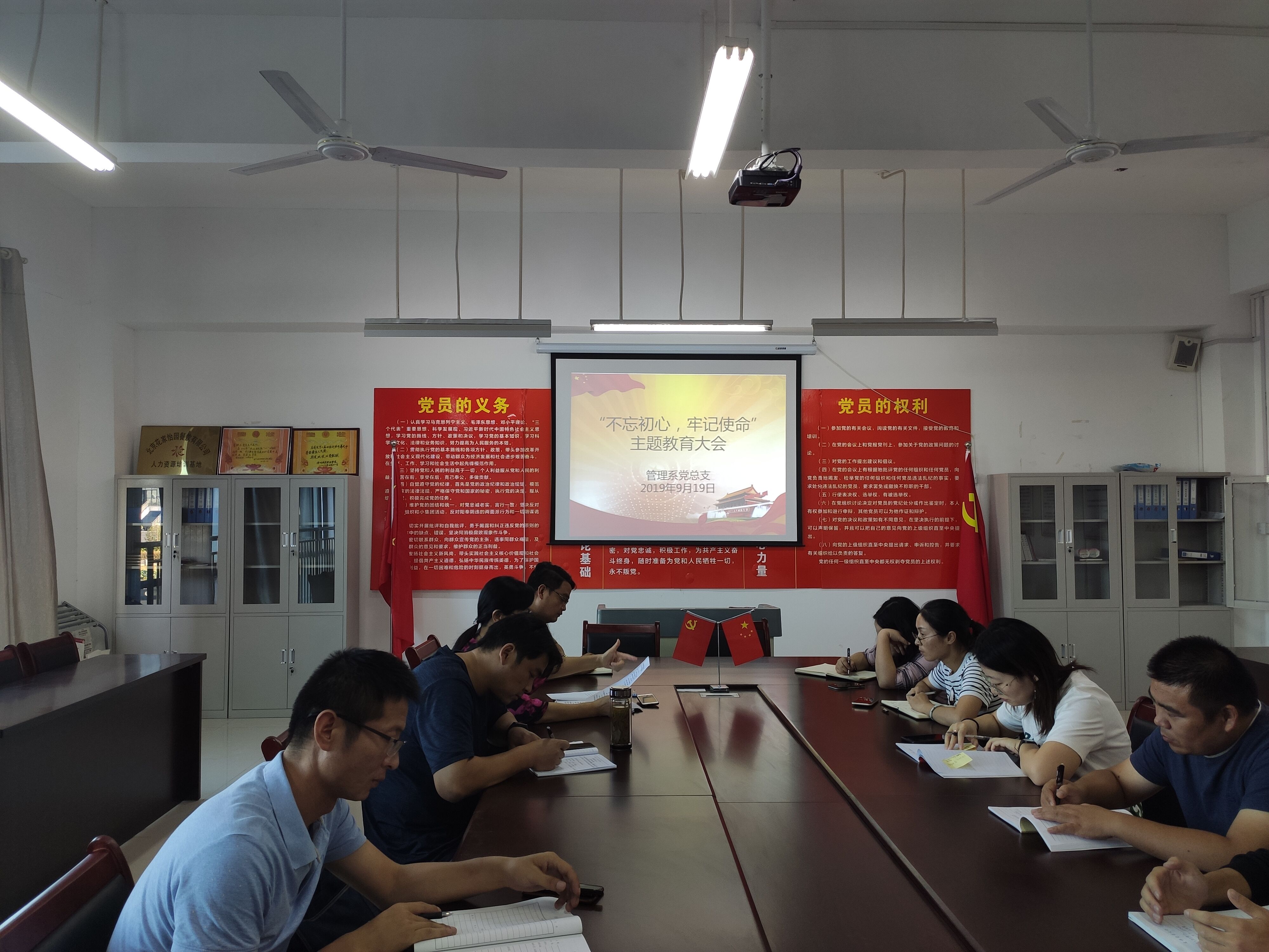 9月19日下午,管理系党总支于系会议室召开“不忘初心、牢记使命”主题教育大会,会议由陈素霞主任主持,管理系全体党员参加会议。