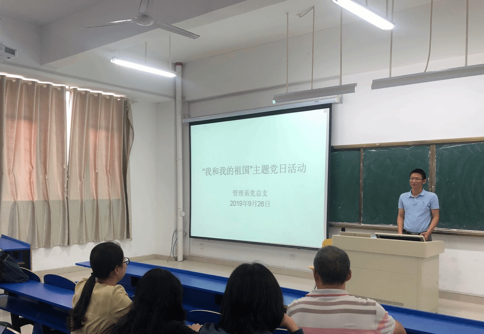 9月26日下午,为庆祝新中国成立70周年,管理系党总支在C1北1104公共教室开展了“我和我的祖国”主题党日活动。