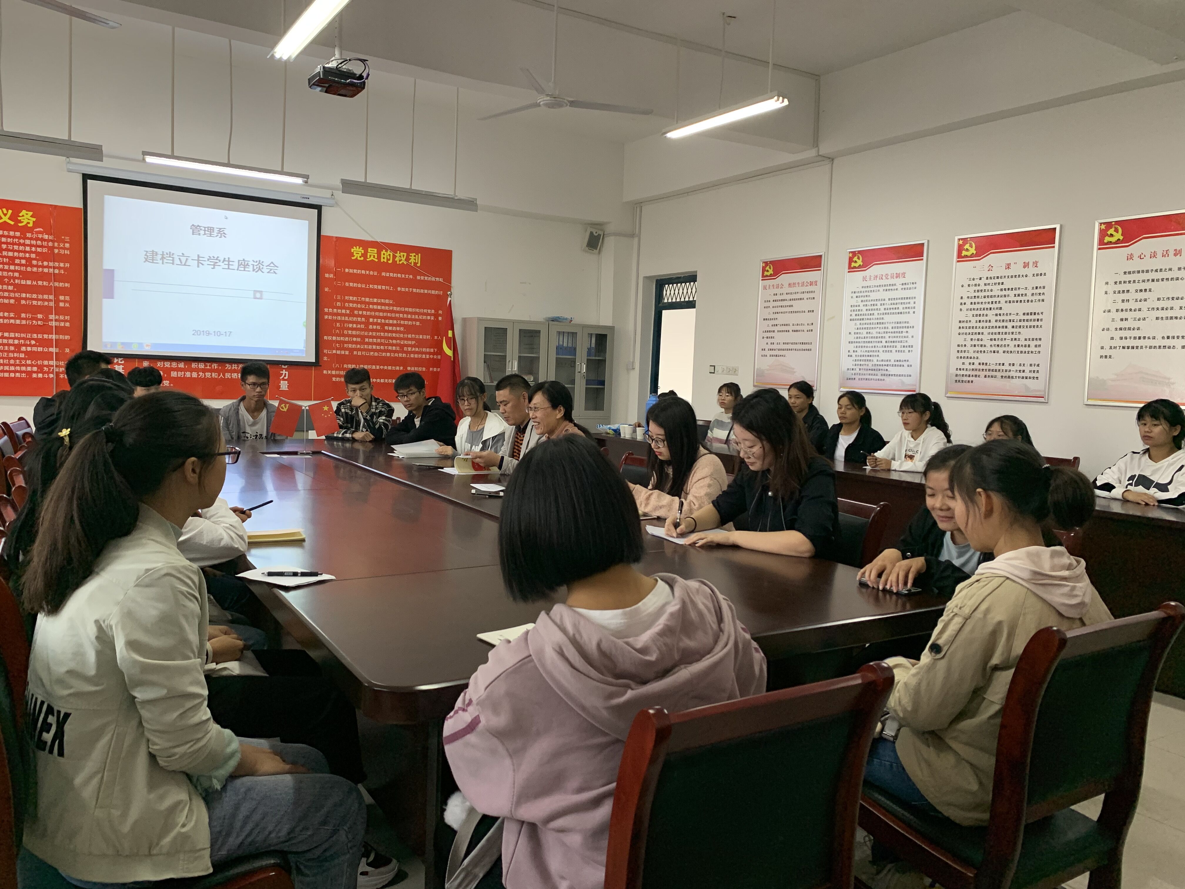 10月17日是国家扶贫日,当天下午,管理系召开建档立卡座谈会,会议由陈素霞主持,部分学管老师与19级建档立卡学生参加。