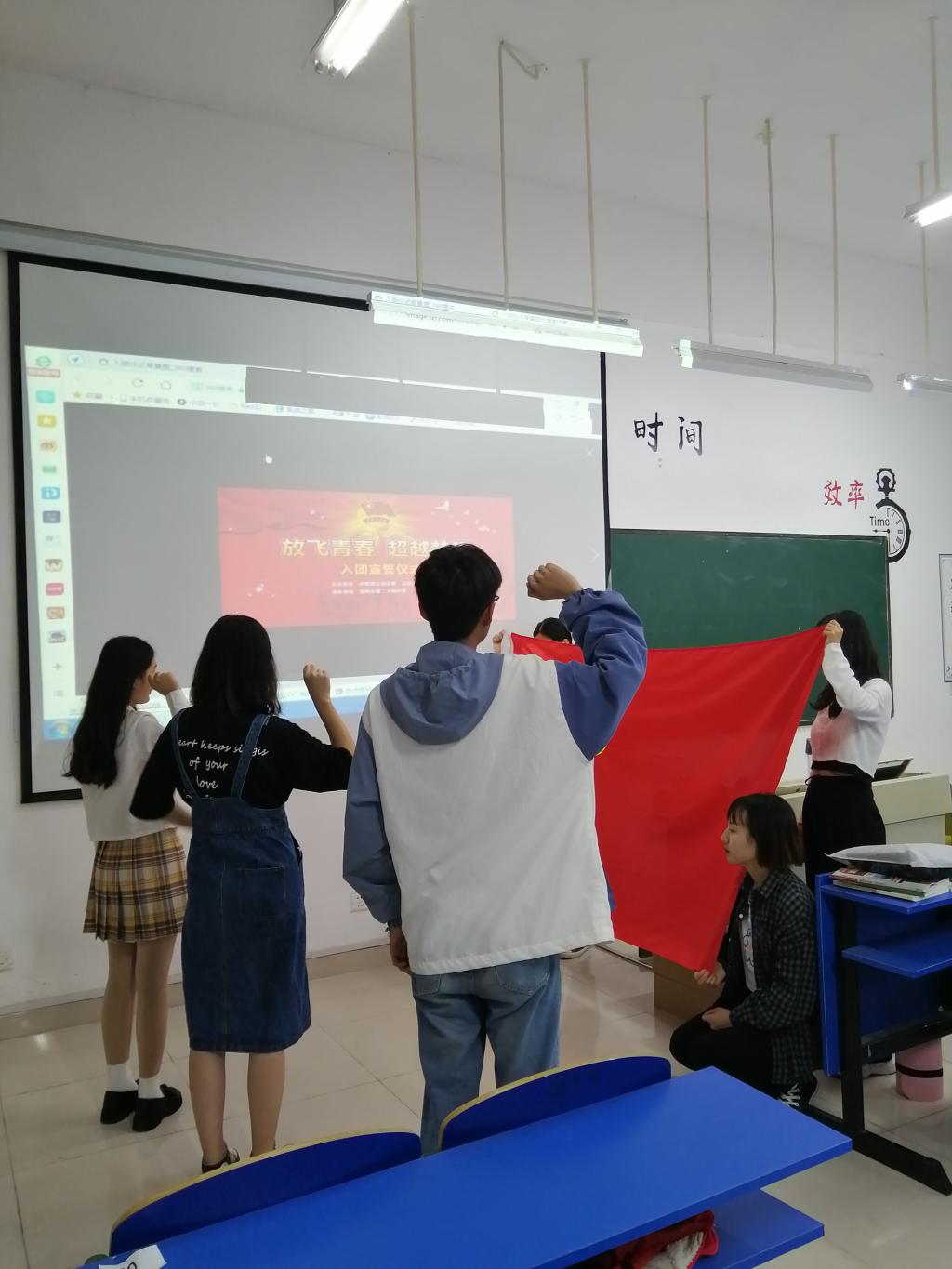 入团仪式在庄严嘹亮的国歌声中正式开始。仪式上,团支书宣读新团员名单,并为新团员佩戴团徽、颁发团章和团员证。随后,全体新团员进行入团宣誓,共同学习了团员的权利和义务。