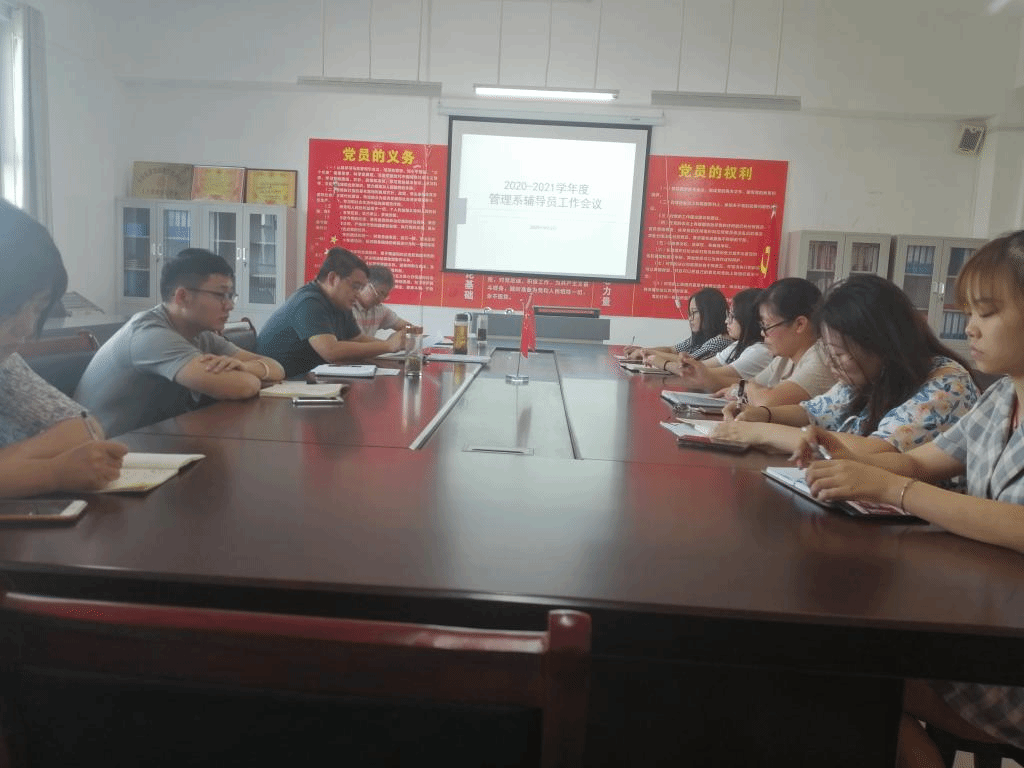 在疫情特殊时期,为进一步做好学生管理工作,管理系于58日下午在系会议室召开在校班级辅导员(班主任)工作会议,系党总支书记陈兴旺、学管秘书唐静、团总支书记杨静怡以及在校班级辅导员(班主任)参加会议,会议由陈兴旺主持。