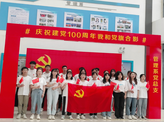 为喜迎中国共产党成立100周年,深入开展党史学习教育,引导同学们争做担当民族复兴大任的时代新人,25日,管理系党总支组织全体教师及本系19个团支部开展了“我和党旗合影”与“我想对党说”主题活动。其间,各位老师、各团支部带领班级同学积极参与,用镜头记录下自己与党旗的精彩瞬间,用深情的语言表达了我系学子对党和国家的热爱之情。