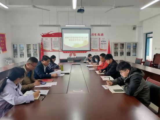 为进一步加强基层党组织建设,充分发挥党支部的战斗堡垒作用,根据《中国共产党章程》《中国共产党基层组织选举工作条例》等有关规定,2023年5月24日下午,管理与信息学院学生党支部召开换届选举党员会议,会议由党支部书记陈兴旺主持,全体党员参加会议。