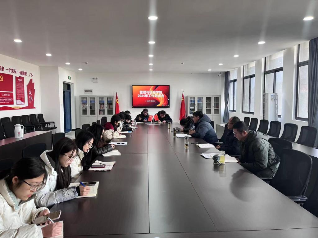 1月22日,管理与信息学院在润德楼301会议室召开题为“总结2023,谋划2024”工作务虚会,会议由学院党总支书记陈兴旺主持,学院党政班子、行政管理人员、各系主任、各专业负责人参会。