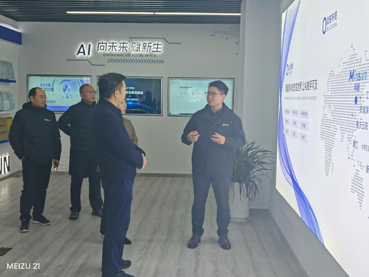 接着,走访团队前往滁州明晟智能科技有限公司。在董事长秦家明的带领下,参观了企业的文化展示区,了解了企业在多模态大模型开发领域的创新成果与应用案例,特别是在智能无人机、人形机器人、农用机器人、工业互联网等领域的项目实践经验和技术突破。