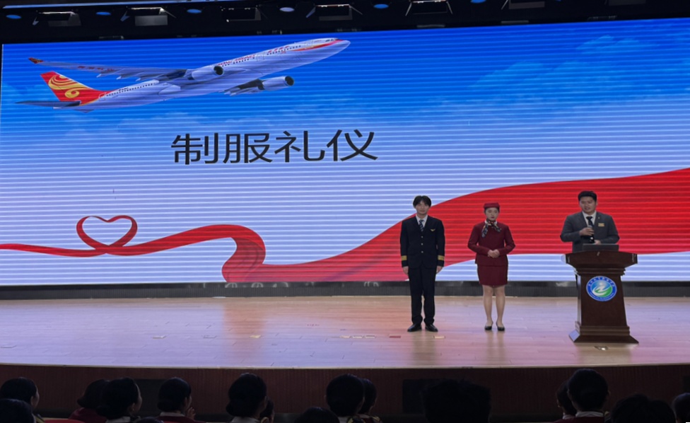 授装仪式正式开始,参会领导依次为学生授装。同学们身着崭新的职业制服,精神抖擞,展现出了空乘专业学生的良好精神风貌,这标志着他们正式开启了空乘专业学习的新征程。