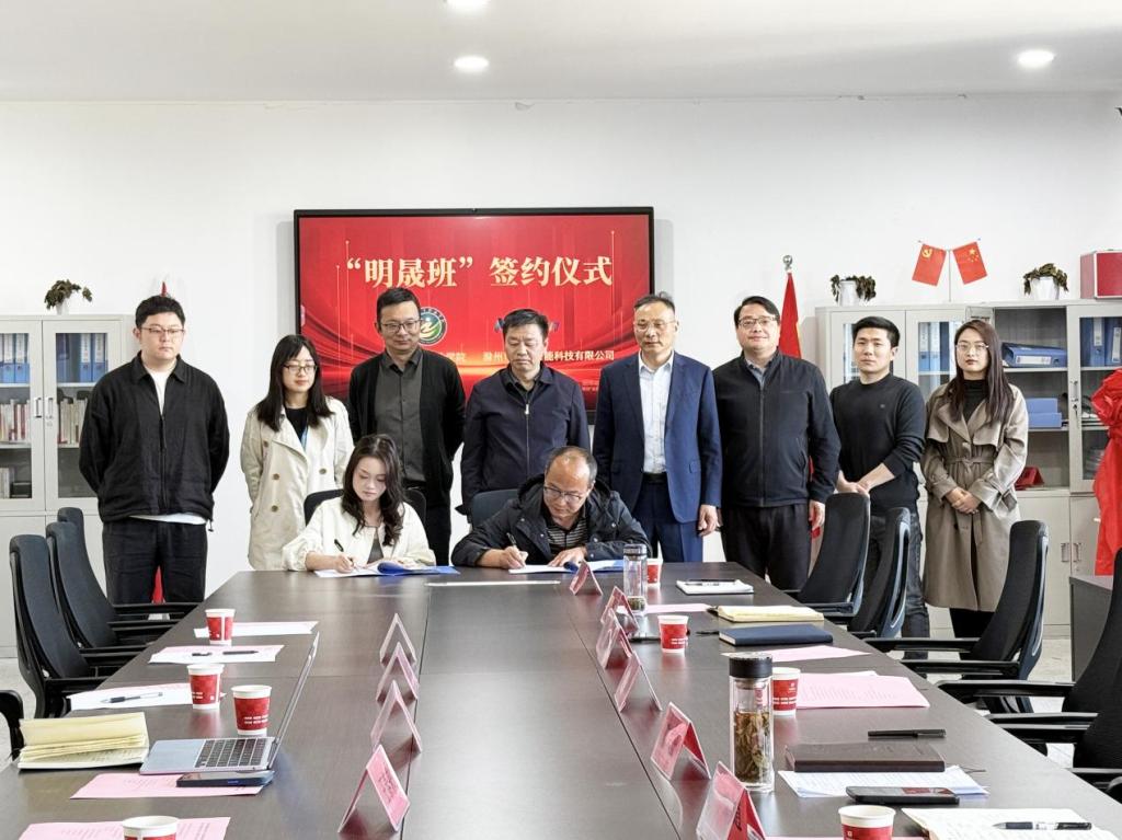 4月14日下午,滁州城市职业学院与滁州市明晟智能科技有限公司举行校企合作签约仪式,共同启动"明晟班"人才培养计划。会议由校党委委员曹士东主持,校长汪上、管理与信息学院党总支书记陈兴旺、管理与信息学院院长叶士舟、武汉伟创聚赢科技有限公司驻校经理涂有羽及滁州市明晟智能科技有限公司代表们齐聚一堂,共绘产教融合新蓝图。