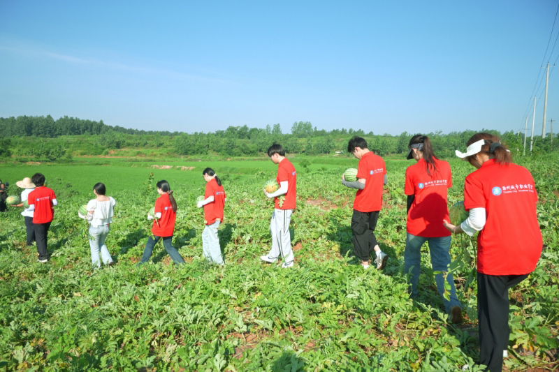7月5日上午,实践小分队抵达东张村,与农民一同投入采摘工作。在瓜田里,同学们弯腰挑选、轻拍西瓜,判断成熟度后小心抱起放入箩筐;在梨园中,他们踮脚、配合剪下高处的梨子。整个采摘过程让同学们深切体会到农民劳作的艰辛,仅体验数小时便已腰酸背痛,也让同学们更加珍惜劳动成果,对农村生活有了更深认识。